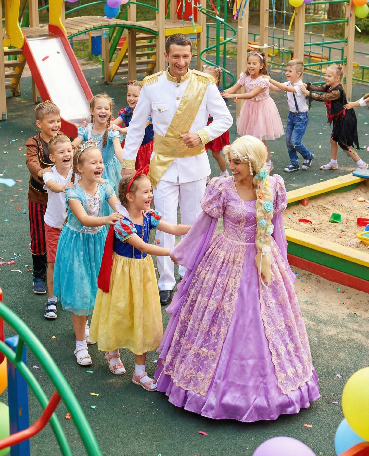 По желанию Заказчика можно добавить принца, а так же можно добавить любую принцессу в шоу программу к Рапунцель (Золушка, Бэль, Русалочка Ариэль, Белоснежку, принцессу Софию, Эльзу, Анну )